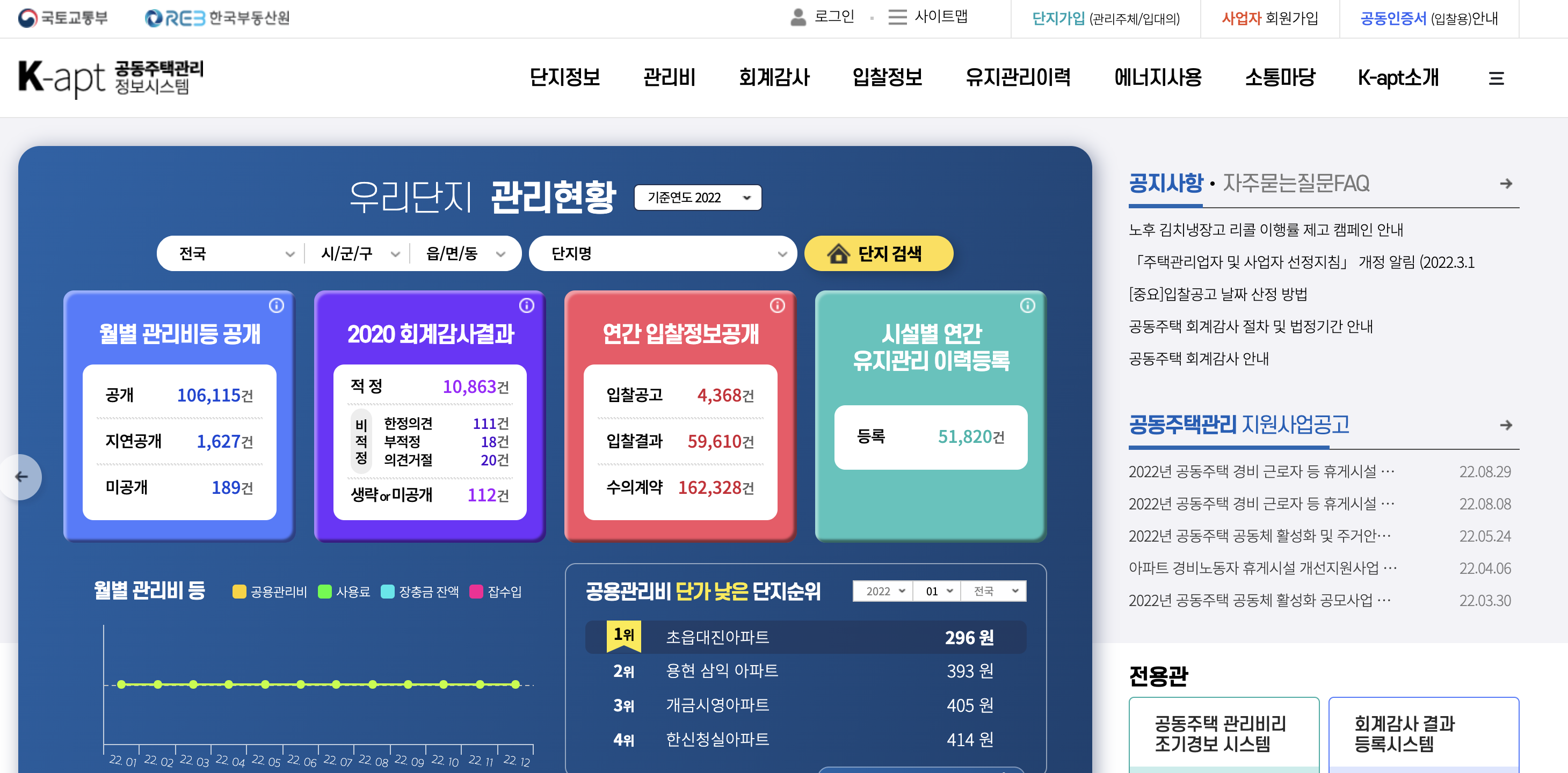 공동주택관리정보시스템 "K-apt"에 들어가셔서 확인 가능합니다. (링크 → 공동주택관리정보시스템)